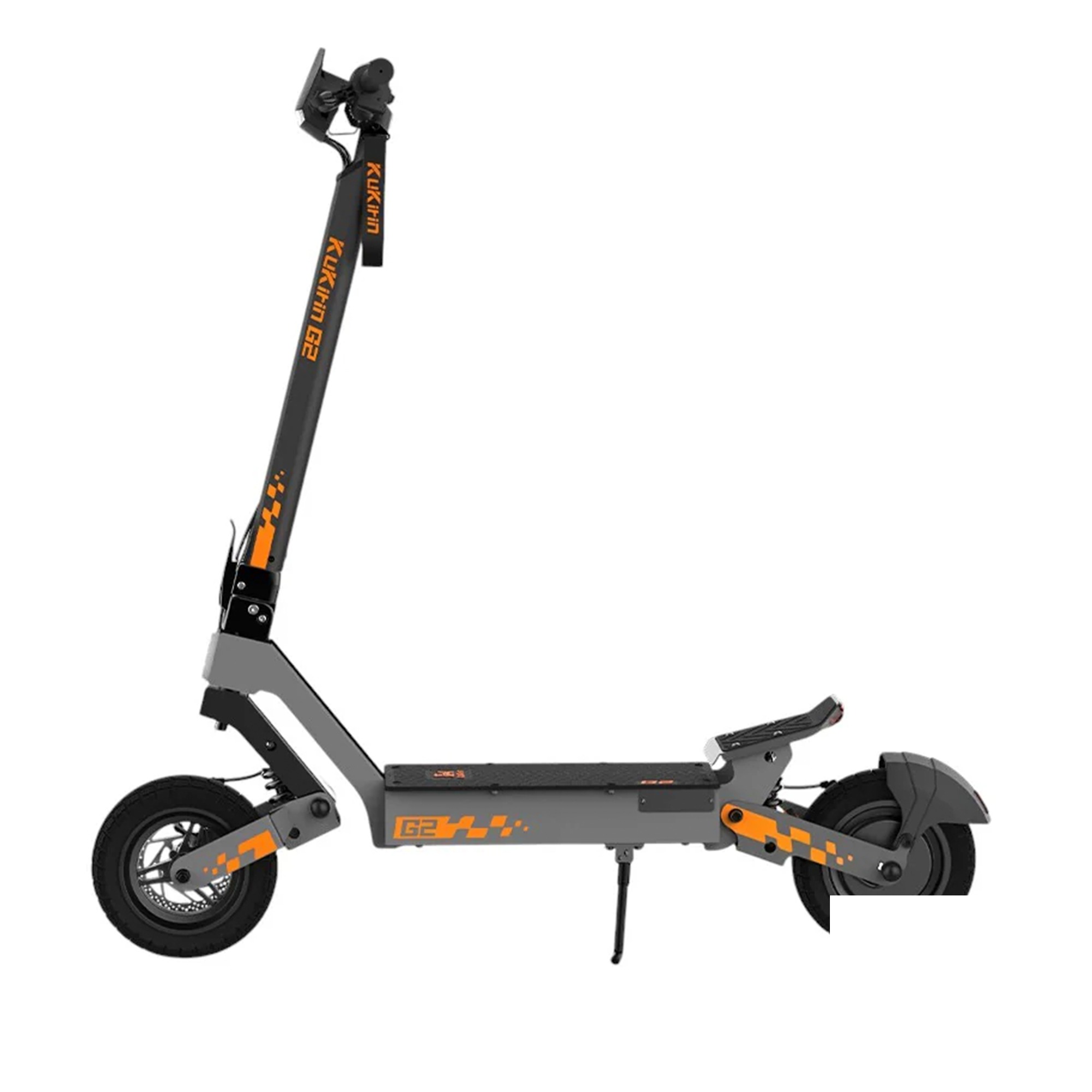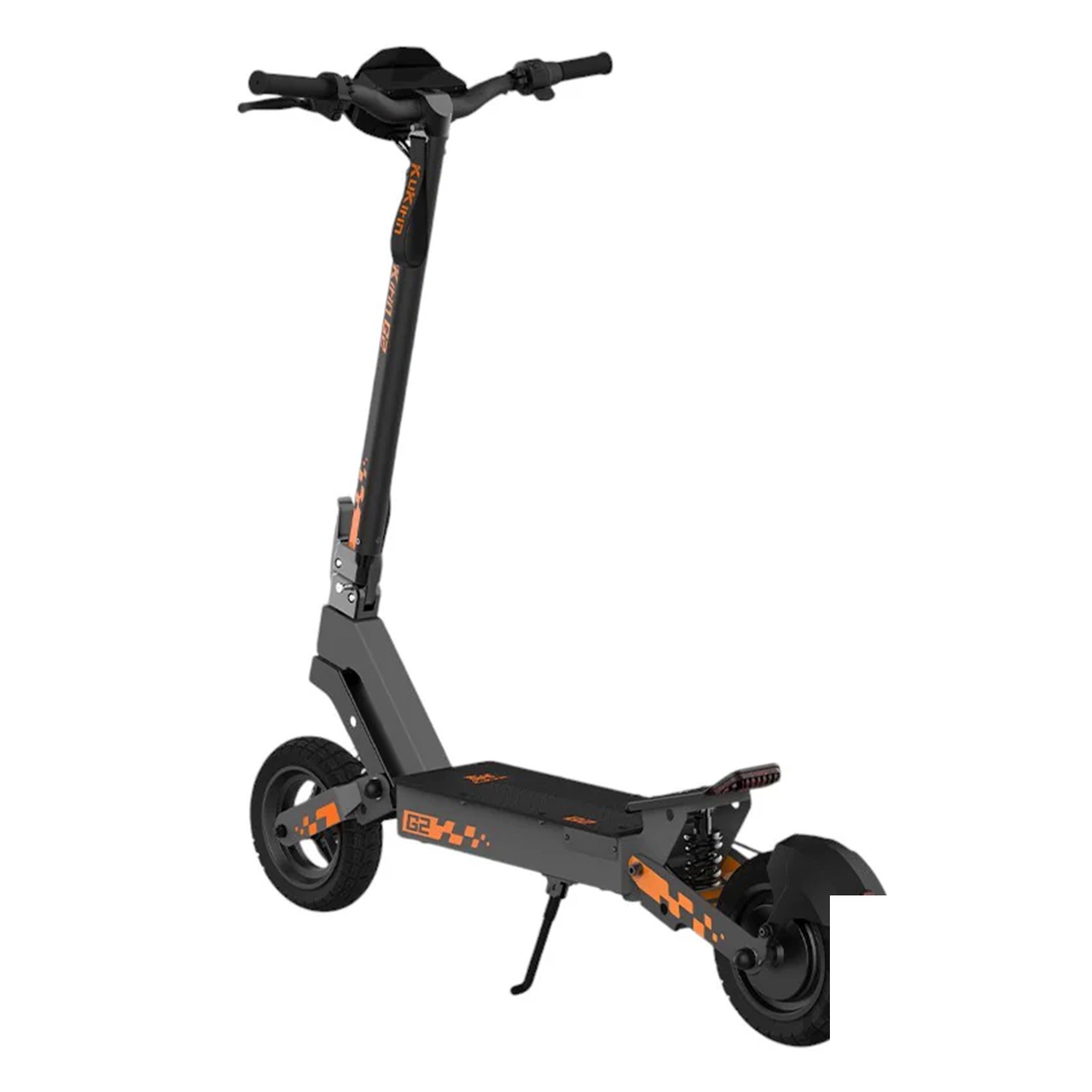 Električni romobil KuKirin G2 ima 10-inčne terenske vakuumske gume i prednje i zadnje amortizere sa oprugama. Ovi elementi pružaju odličan prijem i apsorpciju udara, osiguravajući udobnu vožnju po različitim vrstama podloga. Dizajn vakuumskih guma smanjuje rizik od pucanja i povećava sigurnost i udobnost. Bilo da se vozite po gradskom asfaltu ili istražujete šljunčane staze, KuKirin G2 pruža jedinstveno iskustvo vožnje.