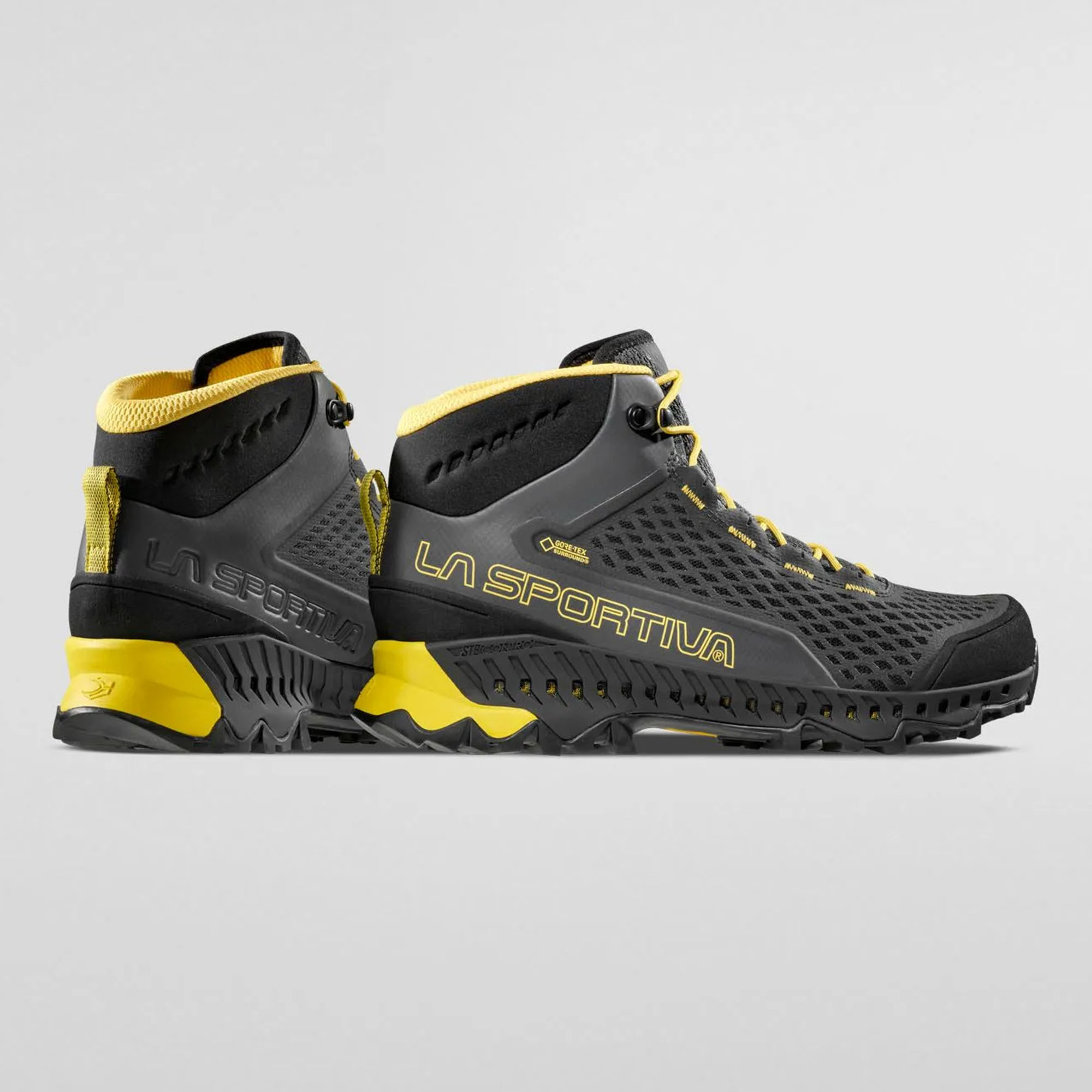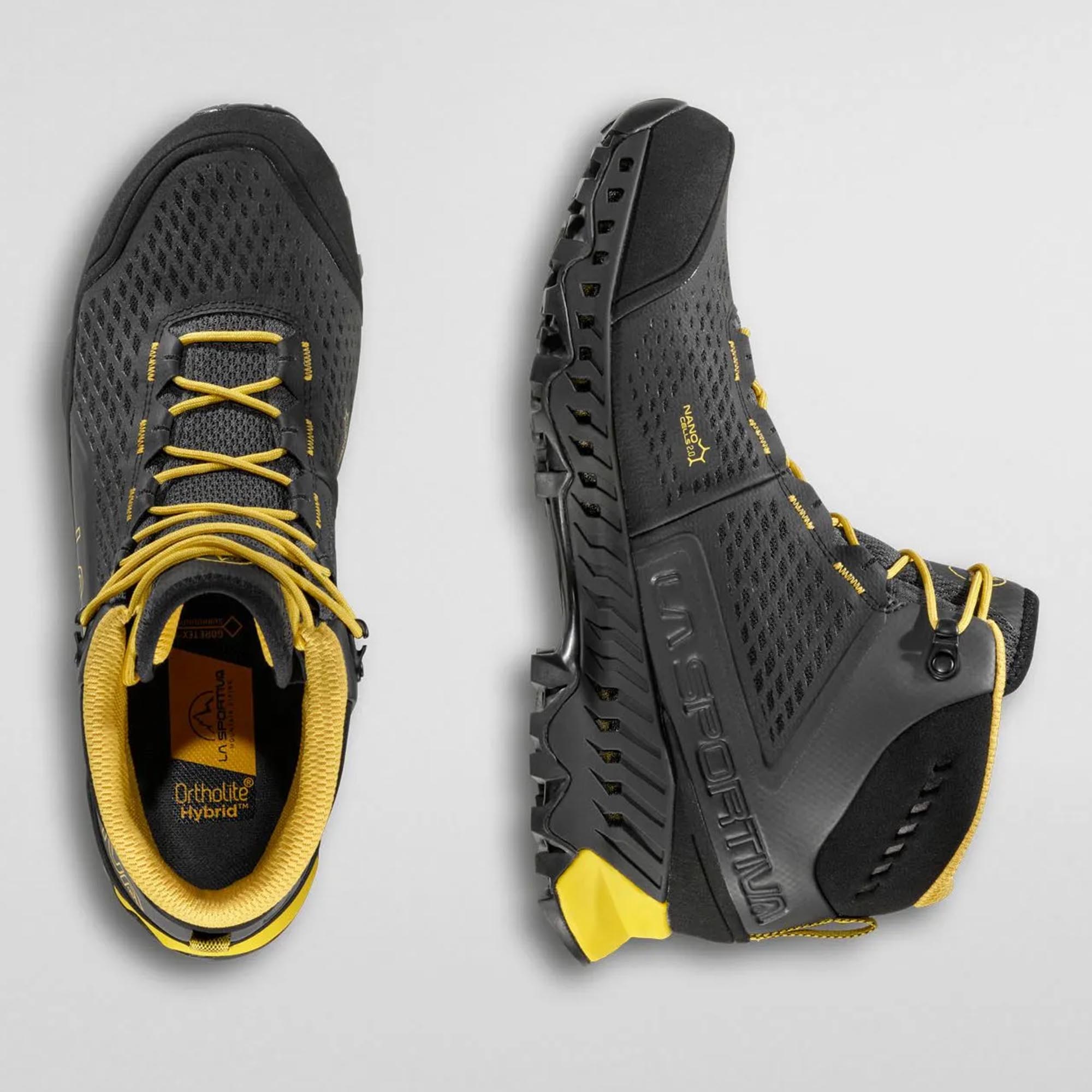 Stream su gojzerice srednjeg kroja za brzo planinarenje za novu generaciju planinarenja. Usvajaju rješenja koja su dio planinskog DNK La Sportive, kombinujući tehnologije i koncepte izvedene iz kategorija planinskog trčanja i planinarenja kako bi stvorile svestranu, vodootpornu i prozračnu cipelu od 360° zahvaljujući novoj GORE-TEX SURROUND® tehnologiji: ekskluzivnoj membrani koja garantuje prozračnost od 360° zahvaljujući široj površini za prozračivanje koja obuhvata gornji dio, uložak i EVA međupotplat sa bočnim otvorima za ventilaciju u TPU-u. Kanali za prozračivanje vidljivi duž profila međupotplata zaštićeni su izuzetno otpornom najlonskom monomrežom kako bi se spriječio ulazak kamenčića i drugih nečistoća u otvore za ventilaciju. Gornji dio srednjeg kroja koristi strukturu Nano-Cells 2.0™; super prozračne ćelije koje djeluju u sinergiji sa GORE-TEX SURROUND® membranom kako bi pružile neviđen nivo prozračnosti. Donji dio gojzerice uključuje Stability control System™, stabilizacijski sistem kontrole koji integriše otvore za ventilaciju sa GORE-TEX SURROUND® tehnologijom. Potplat Vibram XS Trek pruža izvrsno prianjanje na tvrdom, mekom i blatnjavom terenu. Garantovana je potpuna prozračnost i udobnost.