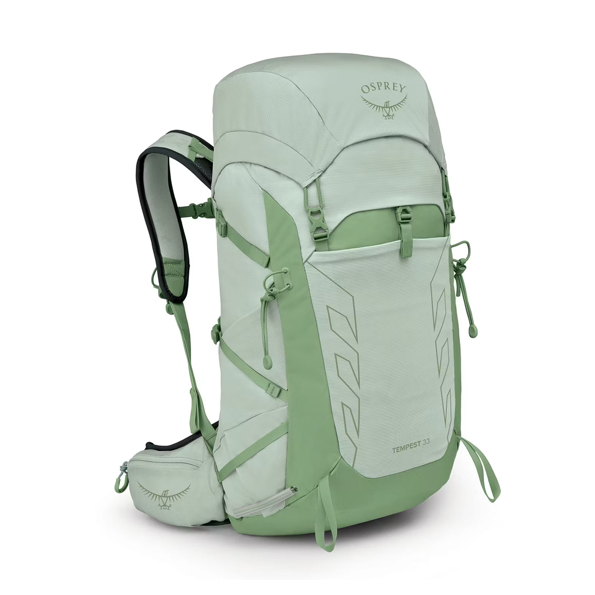 Ženski planinarski ruksak Osprey Tempest 33 dizajniran je sa naglaskom na udobnost i praktična rješenja. Ruksak ima podesiv sistem nošenja AirScape™ od meke pjene koja osigurava odgovarajuće prilagođavanje, kao i dobru cirkulaciju zraka. Naramenice i pojas za kukove ovog ruksaka također su obloženi pjenom. Ova konstrukcija omogućava pravilno prilijeganje i smanjuje rizik od iritacije kože. U ovom modelu imate mogućnost podešavanja visine panela za ovjes naramenica, prilagođavajući ga svojoj visini. Ruksak ima oblikovanu injekcijskom metodom. Ovaj model također ima pojas za kukove koji omogućava odgovarajuće prilagođavanje struku. Dodatno, ruksak ima i podesiv prsni pojas, kako horizontalno, tako i vertikalno. Za pravilno prilijeganje ruksaka tokom hodanja brinu se i posebni stabilizacijski remeni na ramenima. Model je izrađen od izdržljive i lagane reciklirane najlonske tkanine koja je podvrgnuta hidrofobnoj impregnaciji DWR.
